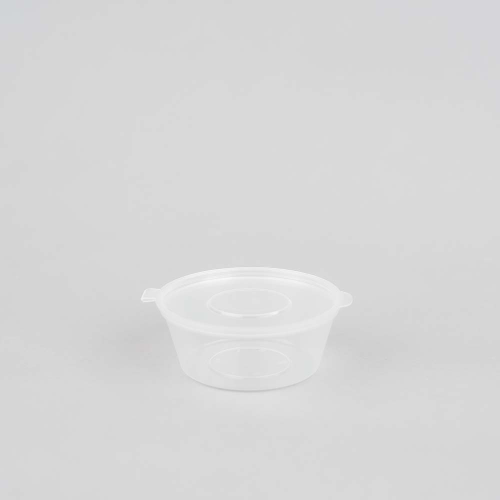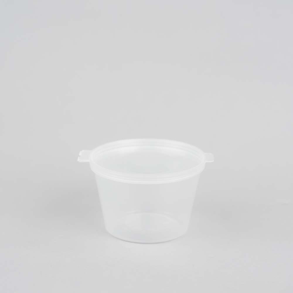 Small sauce cups with hinged lids best for sauces and pickles. Comes in transparent round shape
